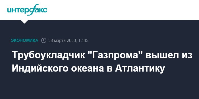 Трубоукладчик "Газпрома" вышел из Индийского океана в Атлантику