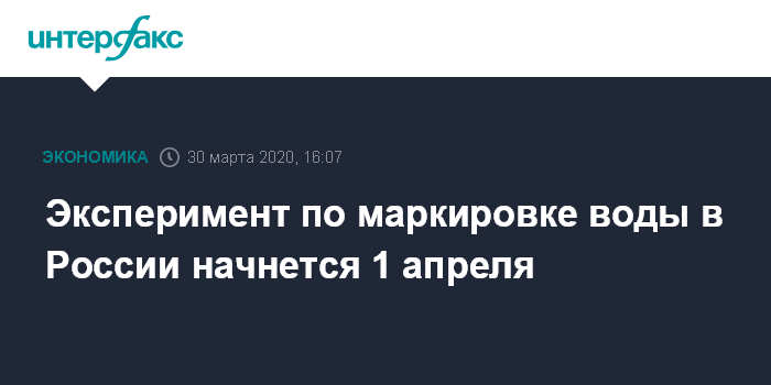 Москва. 30 марта. INTERFAX.RU - Правительство решило провести эксперимент по маркировке питьевой воды с 1 апреля 2020 по 1 марта 2021 года. Такое постановление опубликовано на официальном интернет-портале правовой информации.