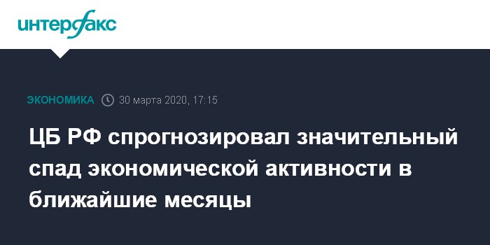 ЦБ РФ спрогнозировал значительный спад экономической активности в ближайшие месяцы