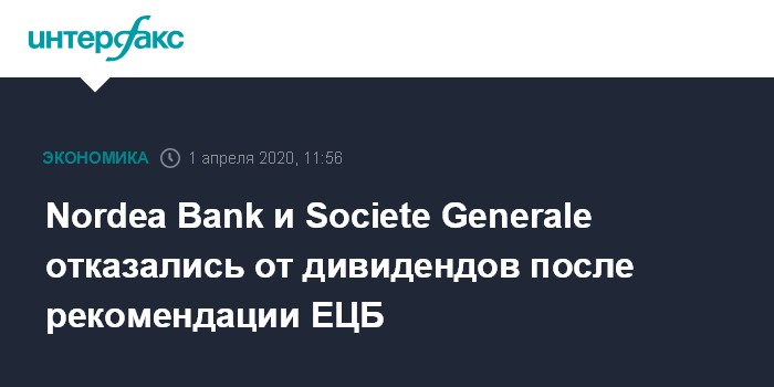 Nordea Bank и Societe Generale отказались от дивидендов после рекомендации ЕЦБ