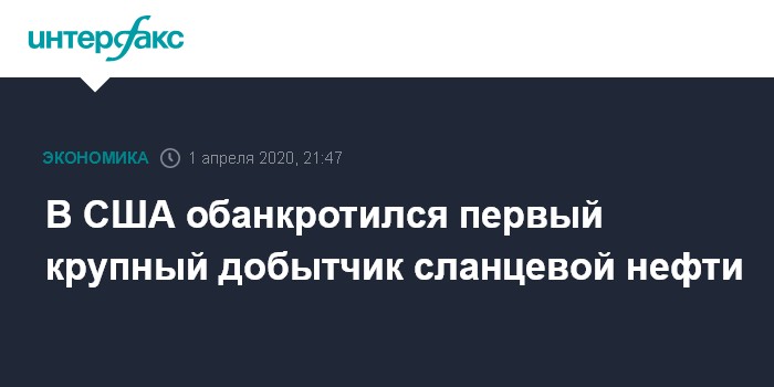 Ранее замглавы Минэнерго РФ Павел Сорокин призывал не думать, что банкротство нефтяных компаний в США - это большая проблема для продолжения нефтедобычи.