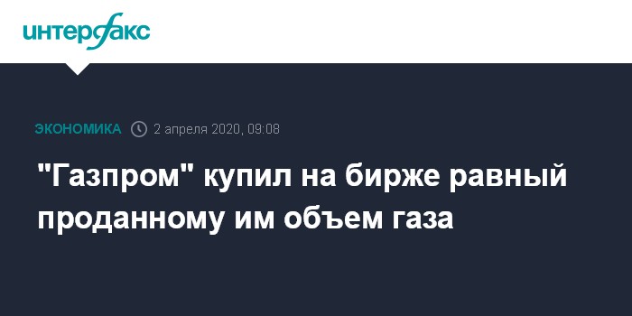 Москва. 2 апреля. INTERFAX.RU - Уникальная ситуация сложилась в марте на торгах газом на Санкт-Петербургской международной товарно-сырьевой бирже (СПбМТСБ): "Газпром" купил ровно столько же газа, сколько продал: 1,2 млрд куб. м продал "Газпром межреогионгаз" и точно такой же объем газа вместе купили компании группы "Газпром" ("регионгазы", "Газпром нефть", "АСИС-Инвест" и ТГК-1).