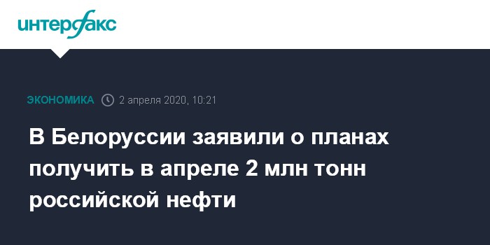 Москва. 2 апреля. INTERFAX.RU - Премьер-министр Белоруссии Сергей Румас заявил, что республика рассчитывает импортировать в апреле 2 млн тонн российской нефти по цене около $4 за баррель.