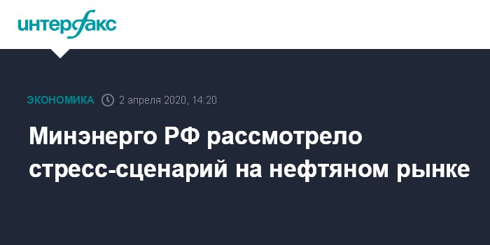 Москва. 2 апреля. INTERFAX.RU - Министерство энергетики РФ считает необходимым ежедневно мониторить ситуацию на нефтяном рынке, сообщил министр энергетики Александр Новак на заседании правительства, докладывая по вопросу об энергостратегии; он также сказал, что ведомство рассмотрело стресс-сценарий на нефтяном рынке в условиях пандемии.