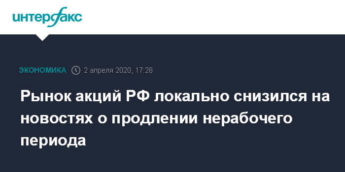 Рынок акций РФ локально снизился на новостях о продлении нерабочего периода