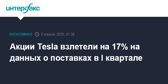 Акции Tesla взлетели на 17% на данных о поставках в I квартале