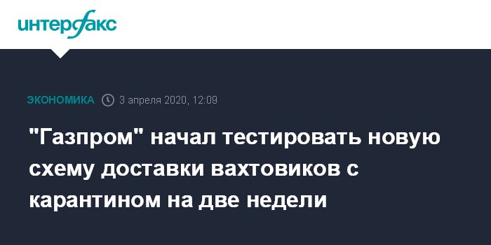 "Газпром" начал тестировать новую схему доставки вахтовиков с карантином на две недели