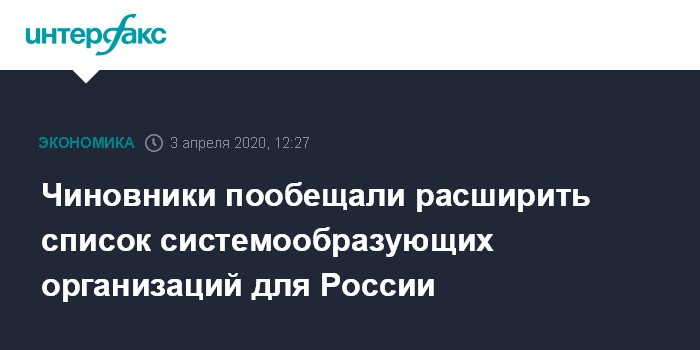 Москва. 3 апреля. INTERFAX.RU - Минэкономразвития расширит недавно утвержденный список российских системообразующих предприятий, дополнительный перечень уже соствлен и его сейчас обсуждают, сказали в пресс-службе ведомства. Пока в списке 646 компаний.