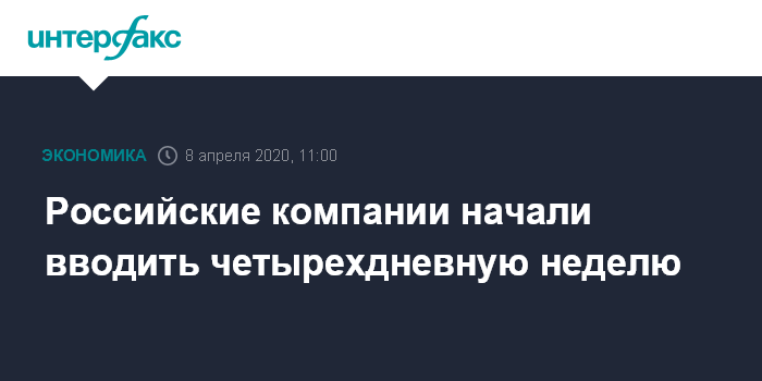 Москва. 8 апреля. INTERFAX.RU - Российские предприятия, чтобы сократить расходы на зарплаты, начали переводить сотрудников на четырехдневную рабочую неделю, пишут "Ведомости". Газета упомянула "СИБУР", ОАО "РЖД" и метрополитен Екатеринбурга.