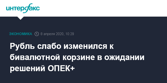 Как отмечают эксперты "Интерфакс-ЦЭА", рубль демонстрирует небольшую разнонаправленную динамику к доллару и евро и почти не меняется к бивалютной корзине на старте торгов. Участники торгов находятся в ожидании видеоконференцию стран ОПЕК+, которая должна состояться в четверг.