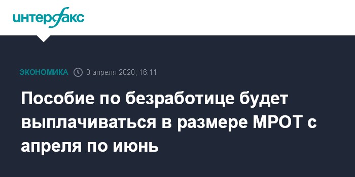 Москва. 8 апреля. INTERFAX.RU - Президент РФ Владимир Путин заявил, что пособие по безработице будет выплачиваться в размере одного минимального размера оплаты труда (МРОТ) в апреле, мае и июне текущего года.