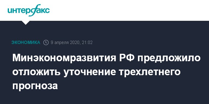 Москва. 9 апреля. INTERFAX.RU - Минэкономразвития РФ в связи с текущей ситуацией предложило перенести уточнение трехлетнего макропрогноза на более поздний срок, сообщили журналистам в пресс-службе министерства.