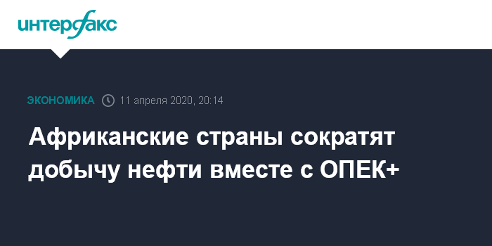 Москва. 11 апреля. INTERFAX.RU - Члены Африканской организации производителей нефти (APPO) обязались присоединиться к соглашению стран ОПЕК и не-ОПЕК по сокращению добычи.