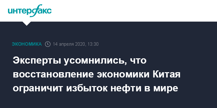 Москва. 14 апреля. INTERFAX.RU - Восстановление экономической активности в Китае после вспышки коронавируса способствовало росту спроса на нефть, но аналитики предупреждают, что этого будет недостаточно для устранения избытка предложения сырья на мировом рынке, который привел к падению нефтяных цен, пишет газета Financial Times.