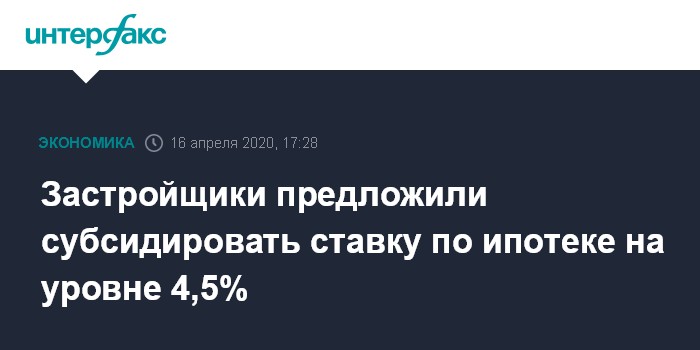 Застройщики предложили субсидировать ставку по ипотеке на уровне 4,5%