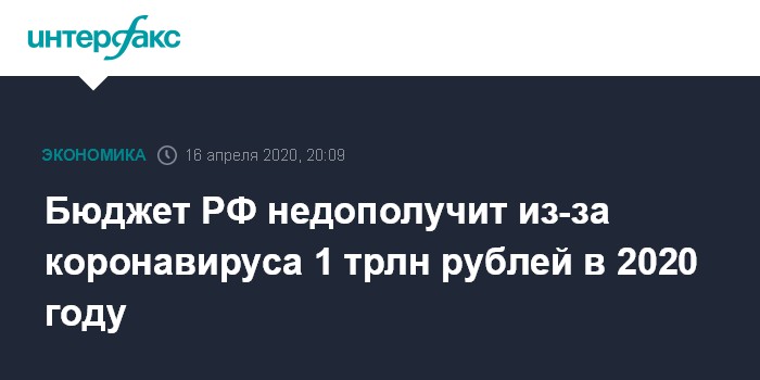 Бюджет РФ недополучит из-за коронавируса 1 трлн рублей в 2020 году