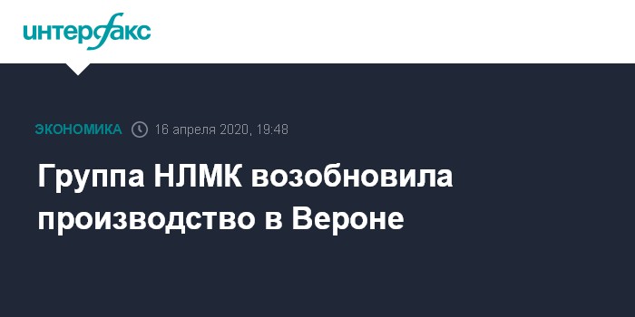 Москва. 16 апреля. INTERFAX.RU - Группа НЛМК возобновила производство на заводе в Вероне.