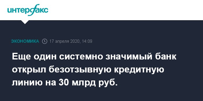 Еще один системно значимый банк открыл безотзывную кредитную линию на 30 млрд руб.