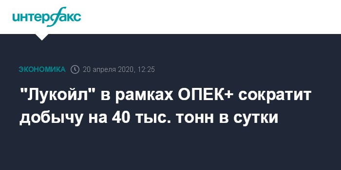 Как сообщалось, в рамках ОПЕК+ Россия в мае-июне должна снизить добычу на 1,8 млн б/с (или на 18%) по сравнению с апрелем. Среднесуточная добыча "ЛУКОЙЛа" в апреле составляет 222,4 тыс. тонн.