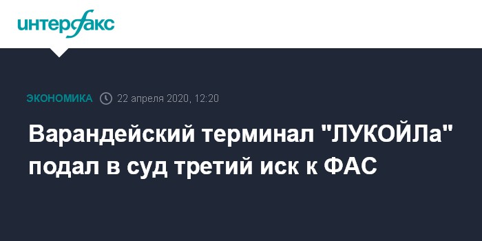 Москва. 22 апреля. INTERFAX.RU - ООО "Варандейский терминал" (принадлежит "ЛУКОЙЛу" подало новый иск к Федеральной антимонопольной службе (ФАС) об оспаривании решений административных органов о привлечении к административной ответственности, следует из картотеки суда.