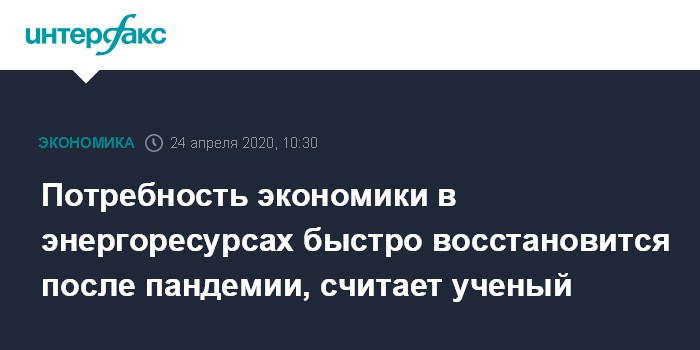 Потребность экономики в энергоресурсах быстро восстановится после пандемии, считает ученый