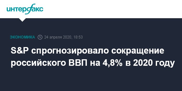 Москва. 24 апреля. INTERFAX.RU - Агентство Standard & Poor's ухудшило прогноз для российской экономики и теперь по базовому сценарию ожидает сокращения ВВП на 4,8% в 2020 году против прежнего прогноза о снижении на 0,8%.
