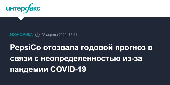 PepsiCo отозвала годовой прогноз в связи с неопределенностью из-за пандемии COVID-19