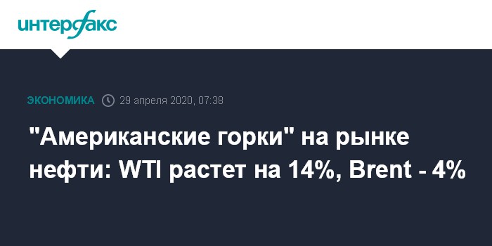 Москва. 29 апреля. INTERFAX.RU - Цены на нефть продолжают резкие скачки на фоне распродаж фьючерсов крупнейшими фондами, при этом инвесторы пытаются оценить, когда рынок может пройти нижнюю точку и начать восстанавливаться после смягчения карантинных мер в США и Европе.