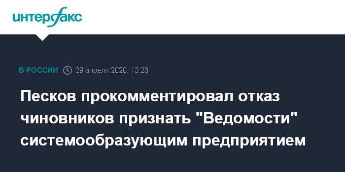 Его попросили прокомментировать решение Минсвязи не включать газету "Ведомости" в список системообразующих компаний в отрасли, которые получат право на приоритетную господдержку. В министерстве назвали две причины этого решения: быстрый рост аудитории в период пандемии и внутренний конфликт в редакции.