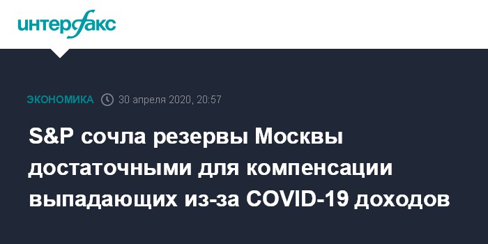 S&P сочла резервы Москвы достаточными для компенсации выпадающих из-за COVID-19 доходов