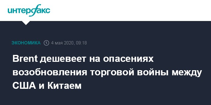 Москва. 4 мая. INTERFAX.RU - Цены на нефть опускаются в понедельник на информации о том, что США рассматривают возможность повышения пошлин на китайские товары в качестве одной из мер привлечения КНР к ответственности за сокрытие информации о появлении коронавирусной инфекции COVID-19.