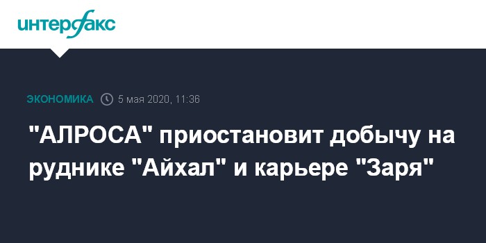 Планируется, что на руднике "Айхал" горные работы будут приостановлены до 30 сентября 2020 года, на карьере "Заря" - до 31 декабря 2020 года.