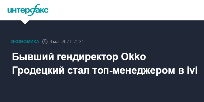 Москва. 6 мая. INTERFAX.RU - Бывший гендиректор онлайн-кинотеатра Okko, принадлежащего Rambler Group, Иван Гродецкий перешел к конкуренту, став исполнительным директором компании ivi.