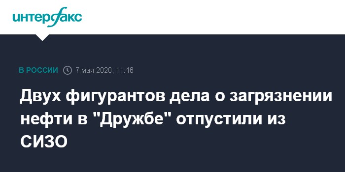 Двух фигурантов дела о загрязнении нефти в "Дружбе" отпустили из СИЗО