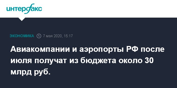 "После июля авиакомпаниям и аэропортам может понадобиться еще около 30 млрд руб., но мы договорились, что к этому вопросу вернемся после рассмотрения динамики работы отрасли в мае и июне с учетом возможности федерального бюджета", - сказал Дитрих.