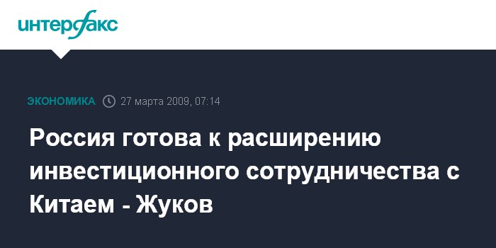 Пекин. 27 марта. ИНТЕРФАКС-КИТАЙ - Россия считает необходимым расширять инвестиционное сотрудничество с Китаем и для этого существуют серьезные предпосылки, сказал в пятницу в Пекине вице-премьер правительства России Александр Жуков.