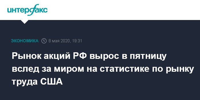 Москва. 8 мая. INTERFAX.RU - Рынок акций в пятницу подрос по индексам вслед за мировыми площадками и нефтью, попытки коррекции были нивелированы статистикой по рынку труда США, оказавшейся лучше ожиданий.