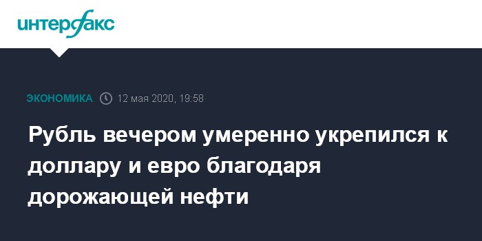 Как отмечают эксперты "Интерфакс-ЦЭА", рубль продолжает умеренно повышаться к доллару и евро на вечерних торгах на фоне нефти, котировки которой растут на сообщениях о планах дополнительного сокращения добычи нефти Саудовской Аравией и некоторыми другими странами ОПЕК. Опережающий рост рубля к доллару и менее заметная динамика в паре с евро связаны с падением котировок американской валюты на Forex, в том числе к евро, после того, как президент США Дональд Трамп призвал ФРС снизить процентные ставки до отрицательных величин.