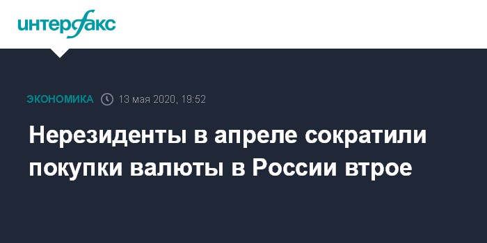Москва. 13 мая. INTERFAX.RU - Нерезиденты и дочерние иностранные банки в апреле 2020 года приобрели валюту на российском рынке на 108,9 млрд рублей, что примерно в три раза меньше, чем в марте, однако также является существенным объемом, говорится в обзоре рисков финансовых рынков, опубликованном на сайте ЦБ РФ.