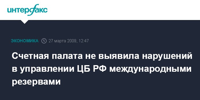 Москва. 27 марта. INTERFAX.RU - Счетная палата не выявила нарушений в управлении ЦБ РФ международными резервами, сообщил глава Счетной палаты РФ Сергей Степашин журналистам в пятницу.