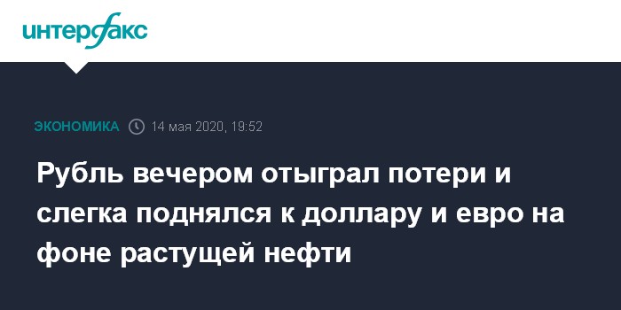 Как отмечают эксперты "Интерфакс-ЦЭА", рубль отыграл потери первой половины дня и слегка повышается к доллару и евро благодаря росту нефти. При этом в целом инвесторы на большинстве мировых рынков демонстрируют нежелание рисковать на опасениях второй волны эпидемии коронавируса из-за постепенного возобновления экономической активности в ряде стран мира.