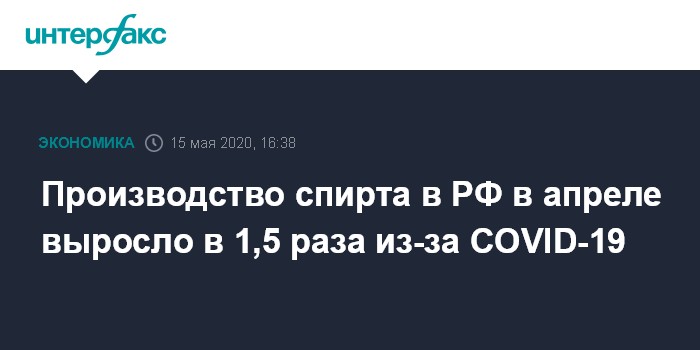 Производство спирта в РФ в апреле выросло в 1,5 раза из-за COVID-19