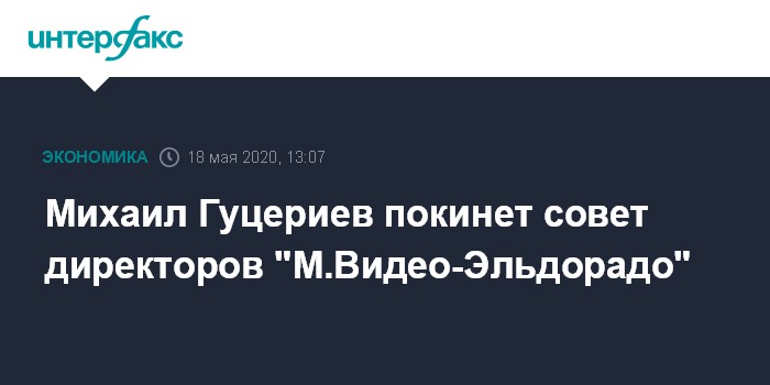 Москва. 18 мая. INTERFAX.RU - Совладелец, председатель совета директоров группы "Сафмар" Михаил Гуцериев не включен в список кандидатов в совет директоров "М.Видео-Эльдорадо" (ПАО "М.Видео"), который будет избран на годовом собрании акционеров.
