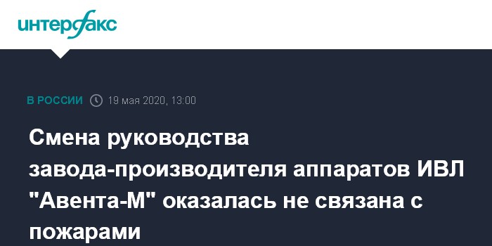 Смена руководства завода-производителя аппаратов ИВЛ "Авента-М" оказалась не связана с пожарами