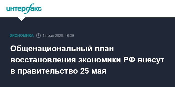 Общенациональный план восстановления экономики РФ внесут в правительство 25 мая