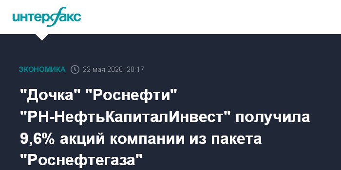 Москва. 22 мая. INTERFAX.RU - ООО "РН-НефтьКапиталИнвест" (дочернее общество "Роснефти") стало владельцем 9,6% акций НК (1 млрд 17 млн 425 тыс. 70 шт.), сообщает компания.