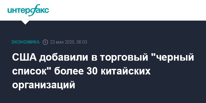 Москва. 23 мая. INTERFAX.RU - Министерство торговли США сообщило, что внесло в "черный список" 33 китайские компании и организации, которые, по мнению американских властей, имеют отношение к ущемлению прав мусульманского населения в Синьцзян-Уйгурском автономном районе КНР или же угрожают национальной безопасности США.