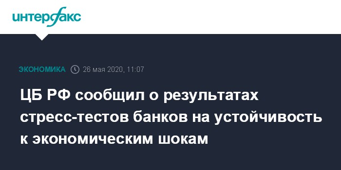 Москва. 26 мая. INTERFAX.RU - ЦБ РФ провел стресс-тесты банков на устойчивость к экономическим шокам, их результаты удовлетворительны, сообщил первый зампред Банка России Дмитрий Тулин в ходе онлайн-заседания комитета Госдумы по финансовому рынку.
