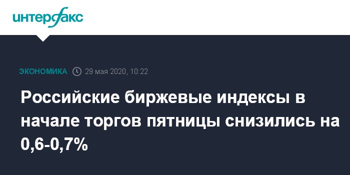 Российские биржевые индексы в начале торгов пятницы снизились на 0,6-0,7%