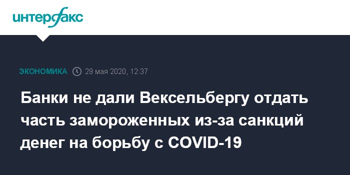 Москва. 29 мая. INTERFAX.RU - Виктор Вексельберг попытался направить часть денег, которые были заморожены на банковских счетах после внесения бизнесмена и его "Реновы" в санкционный список США, на борьбу с пандемией коронавируса, но не смог преодолеть преграду комплаенса швейцарских банков.